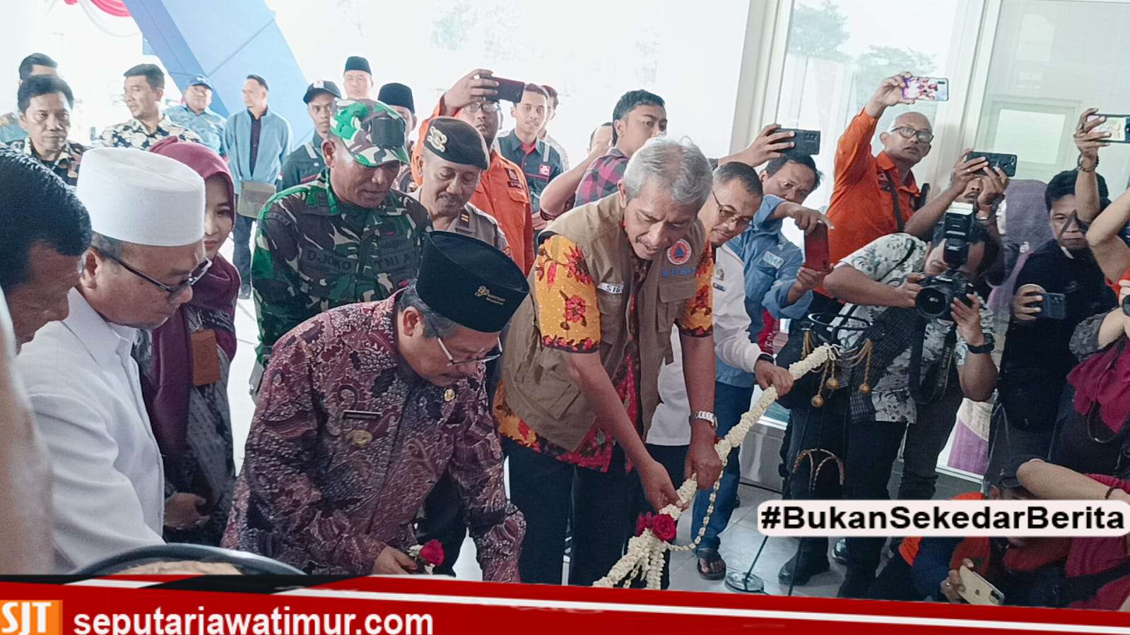 Secara seremonial, acara peresmian dilaksanakan di halaman Gedung Baru BPBD pada hari ini, Jumat (19/1/2024). Ditandai dengan penandatanganan prasasti dan pengguntingan pita rangkaian bunga melati di depan halaman Gedung BPBD. Dilanjutkan dengan pemotongan tumpeng sebagai pertanda rasa syukur.