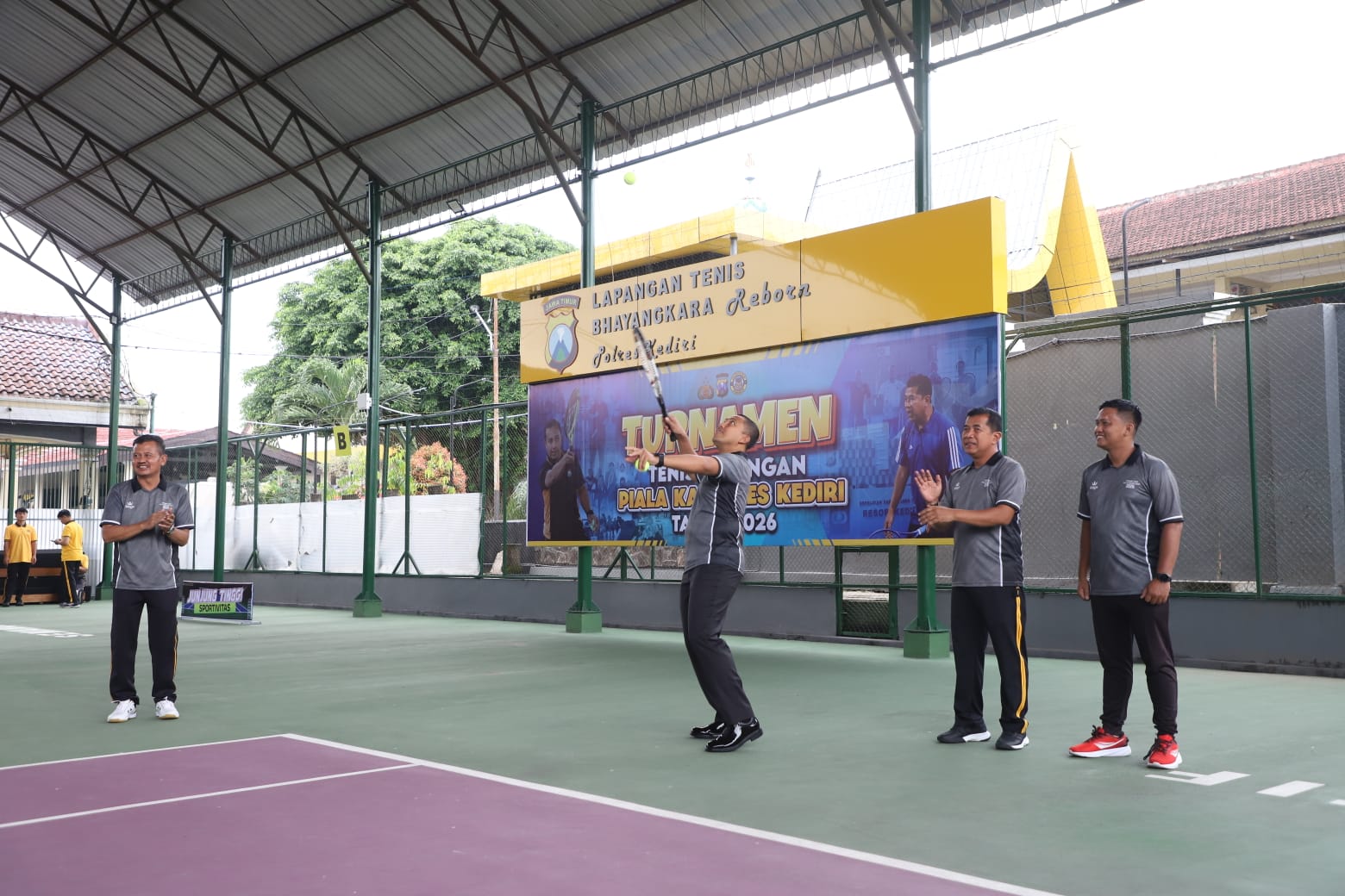 Turnamen dibuka langsung oleh Kapolres Kediri AKBP Bramastyo Priaji, S.H., S.I.K., M.Si., didampingi Wakapolres Kediri Kompol Hari Kurniawan, S.H., M.H. Kegiatan ini diikuti para Pejabat Utama (PJU) Polres Kediri, Kapolsek jajaran, serta peserta turnamen tenis lapangan, dengan kehadiran perwakilan KONI Kabupaten Kediri.
