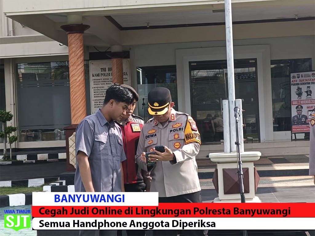 Banyuwangi.seputarjawatimur.com –  Pencegahan judi online menjadi perhatian serius Kepolisian Resor Kota (Polresta) Banyuwangi Polda Jatim, salah satu upaya pencegahan dilakukan dengan menggelar inspeksi mendadak (sidak) handphone (HP) para personelnya.