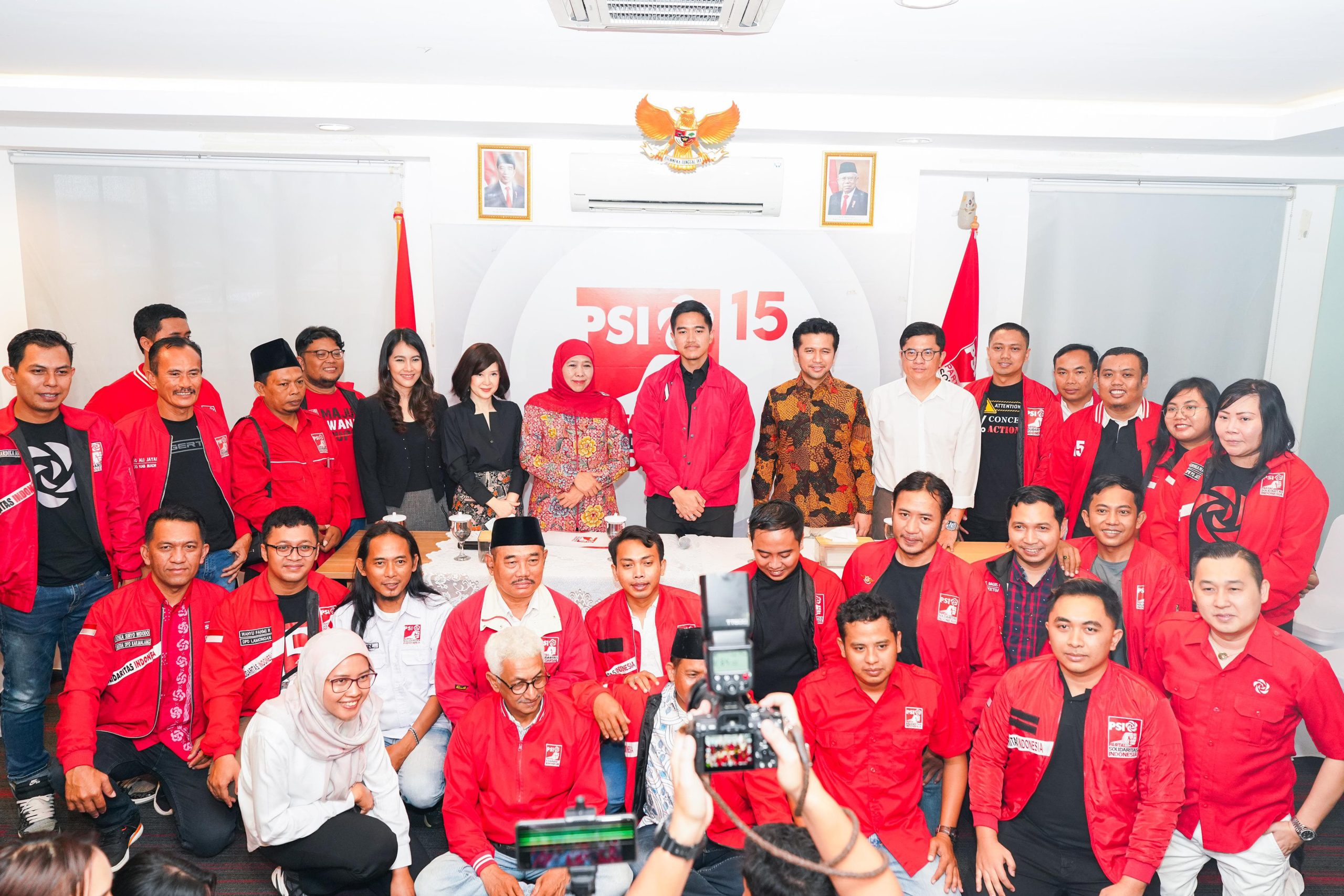 Saat penyerahan SK tersebut dihadiri Wakil Ketua Dewan Pembina DPP PSI Grace Natalie, Ketua PSI Jatim Aan Rohayanto dan seluruh Pimpinan Daerah PSI se Jatim. (Penulis: Munir – ket foto: Ketum DPP PSI Kaesang Pangarep berpose bersama pasangan Khofifah Indar Parawansa dan Emil Elestianto Dardak, beserta jajaran seluruh Pimpinan Daerah PSI se-Jatim.(tar)