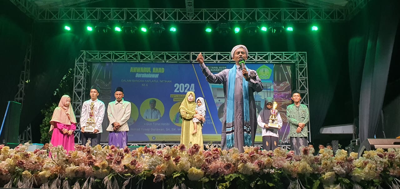 “Selain bersholawat bersama, juga kita memberikan wawasan ajaran agama islam yang baik dan benar. Bahkan tak kalah penting digelarnya wisuda santri yang berprestasi non formal Madrasah Diniyah dan peresmian gedung sekolah SMP Anwarul Ahad,” jelasnya