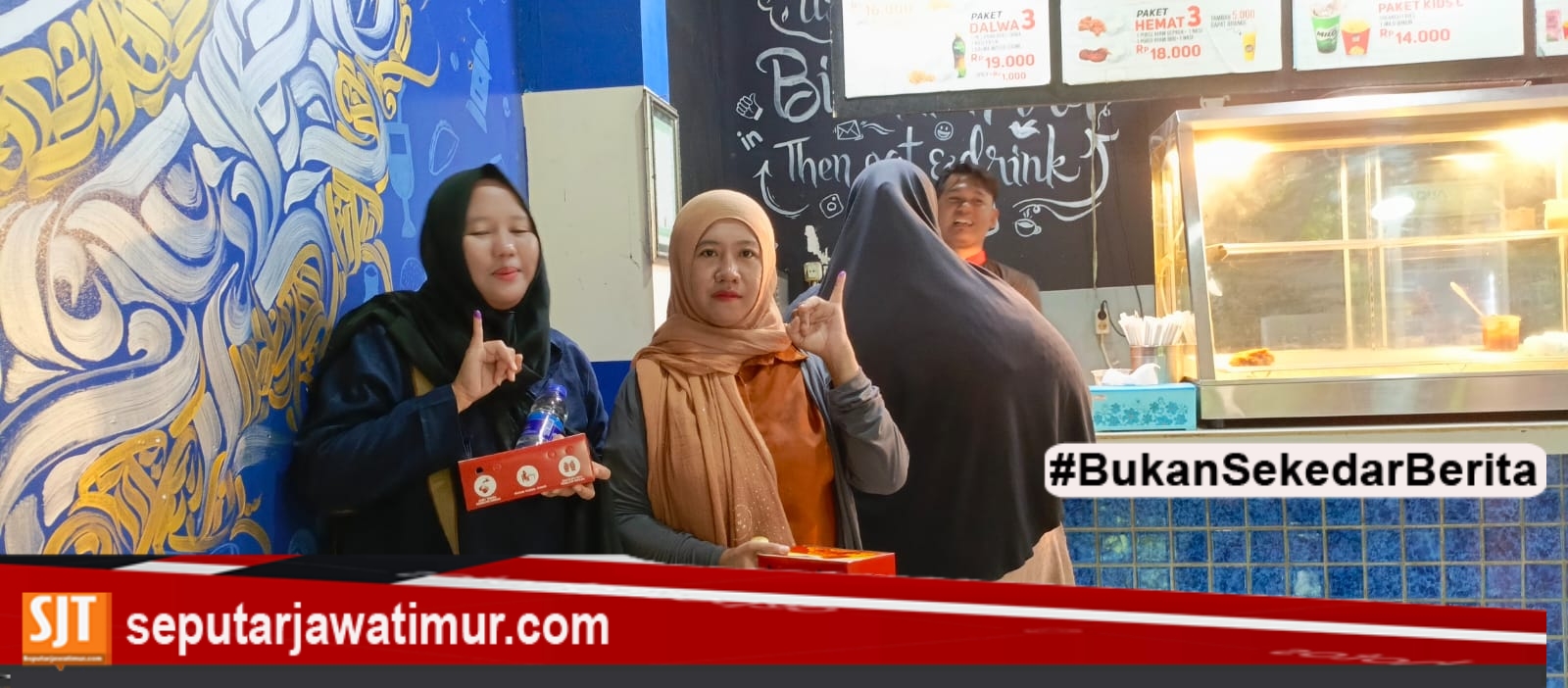 Terbukti usai melakukan pencoblosan surat suara salah satu kedai ayam goreng yang memberikan 1 porsi dan sebotol air mineral di serbu warga.
