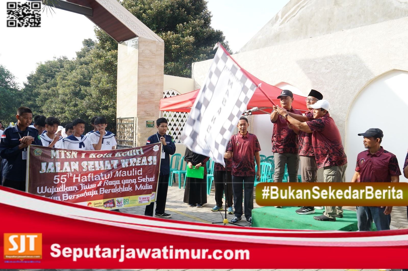 Kediri.swputarjawatimur.com– Wakil Wali Kota Kediri, Qowimuddin atau yang akrab disapa Gus Qowim, secara resmi memberangkatkan peserta *Jalan Sehat Kreasi* dalam rangkaian Haflatul Maulid ke-55 MTsN 1 Kota Kediri, Sabtu (3/5/2025).