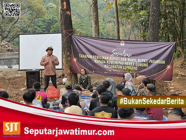 Pasuruan, Seputarjawatimur.com – Komisi Pemilihan Umum (KPU) Kabupaten Pasuruan gelar Sosialisasi Tahapan Pemilihan Bupati dan Wakil Bupati Pasuruan Tahun 2024 kepada Komunitas Herex Gunung Lumbang, bertempat di Lapangan Kali Lumbang Pasuruan.