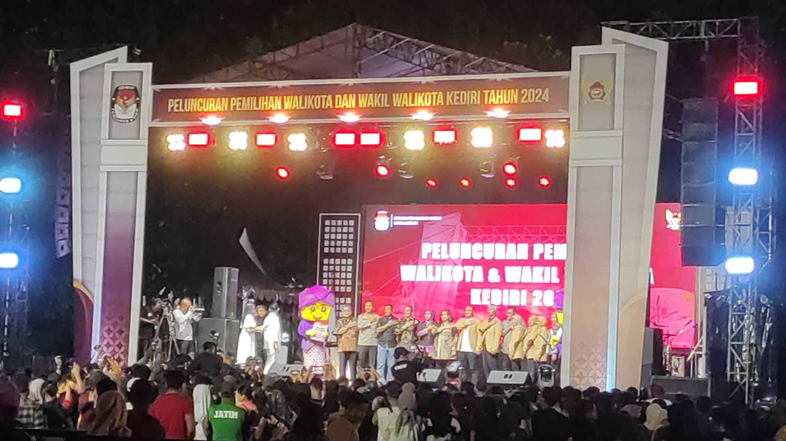 Bertempat di lapangan Brimob.Rabu Malam (19/6/2024)Lounching Pilkada Kota Kediri Jingle dan Maskot Pemilihan Walikota Dan Wakil Walikota Kediri berlangsung meriah.Pilkada sendiri nakan dilaksanakan pada 27 November 2024 mendatang.