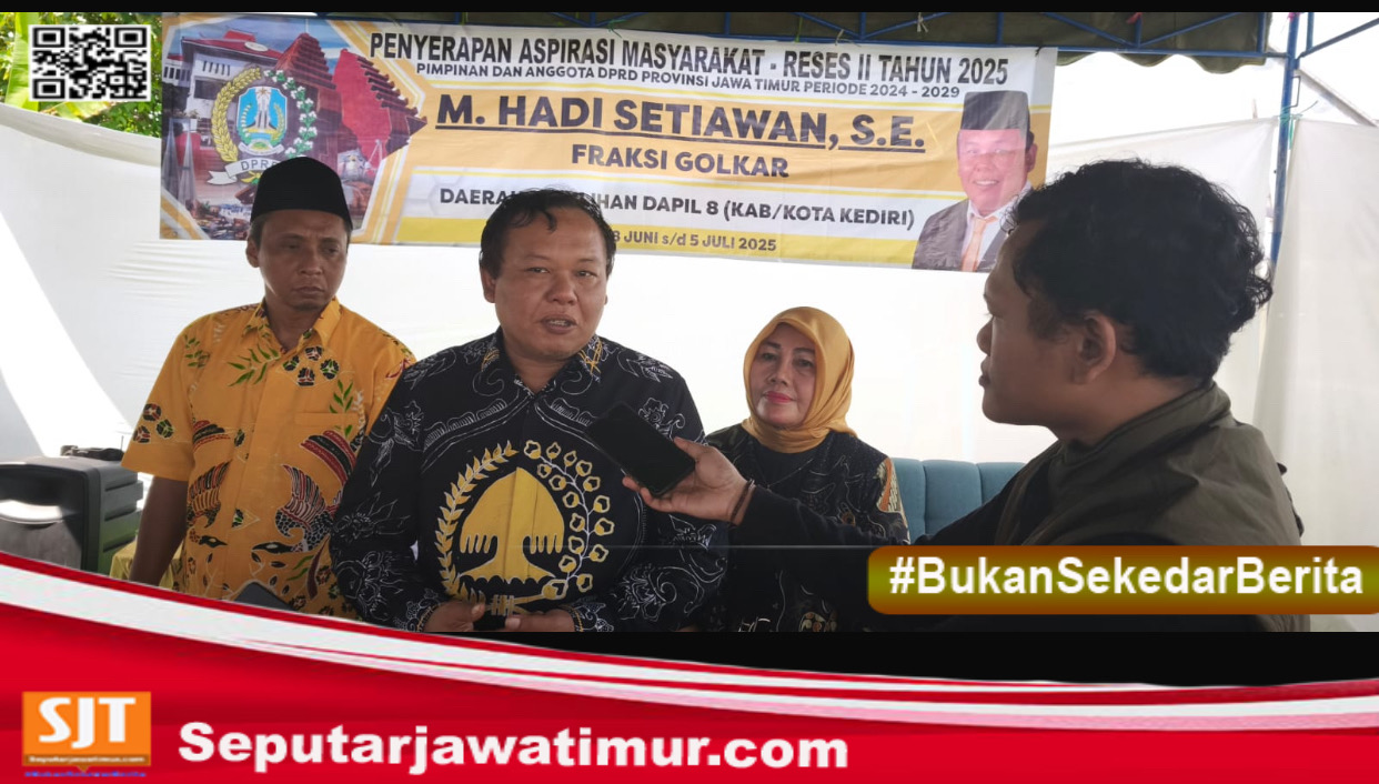 KEDIRI.seputarjawatimur.com– Dalam rangka menyerap aspirasi masyarakat dan mempererat hubungan dengan konstituen di Daerah Pemilihan (Dapil) 8, Anggota DPRD Provinsi Jawa Timur dari Fraksi Partai Golkar, M. Hadi Setiawan, S.E., menggelar kegiatan Reses ke-2 pada Selasa siang (1/7/2025), bertempat di kediaman Ketua Fraksi Golkar DPRD Kota Kediri, Imam Wihdan Zarkasyi, di Kelurahan Banjarmlati, Kecamatan Mojoroto, Kota Kediri.