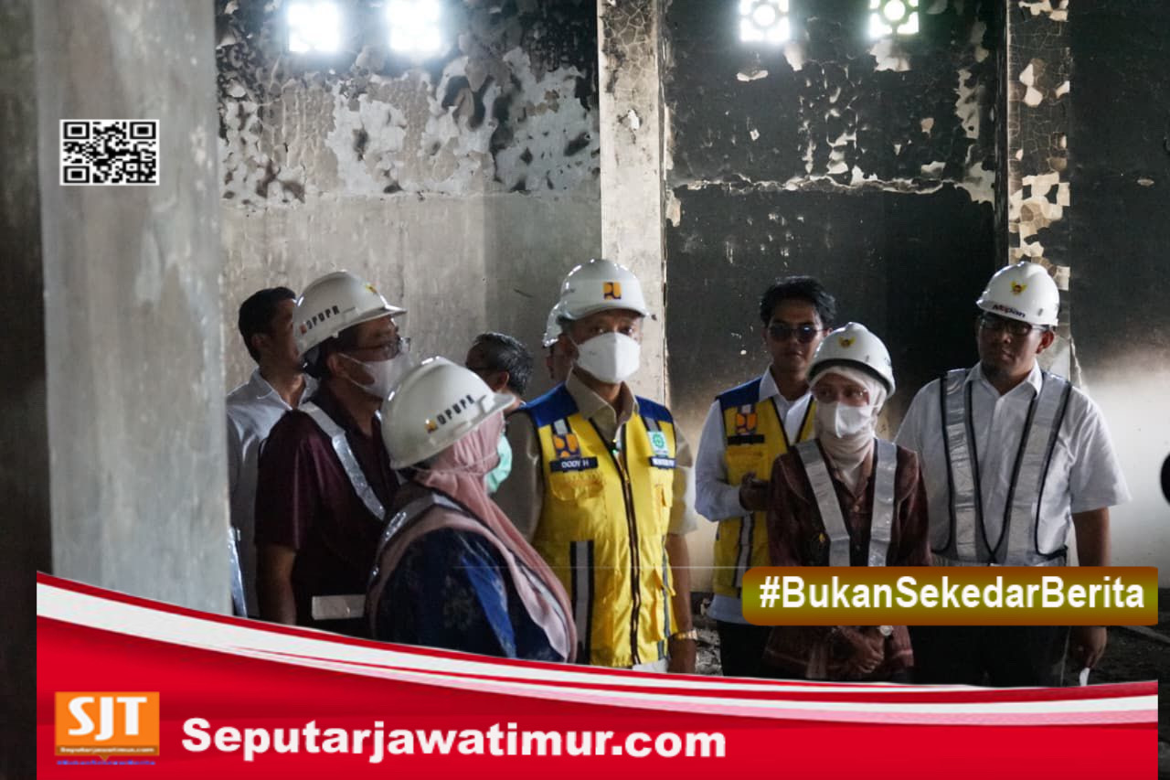 Kediri.seputarjawatimur.com—Wali Kota Kediri Vinanda Prameswati bersama Pimpinan DPRD Kota Kediri mendampingi Menteri Pekerjaan Umum (PU) Dody Hanggodo untuk melihat kondisi Kantor DPRD Kota Kediri yang terbakar pada 30 Agustus lalu, Minggu (14/09/2025). Kunjungan ini bertujuan untuk melihat kondisi bangunan pasca kebakaran sekaligus membahas langkah penanganan. Menteri PU bersama Wali Kota Kediri dan Pimpinan DPRD berkeliling melihat beberapa bagian gedung yang mengalami kerusakan paling parah.