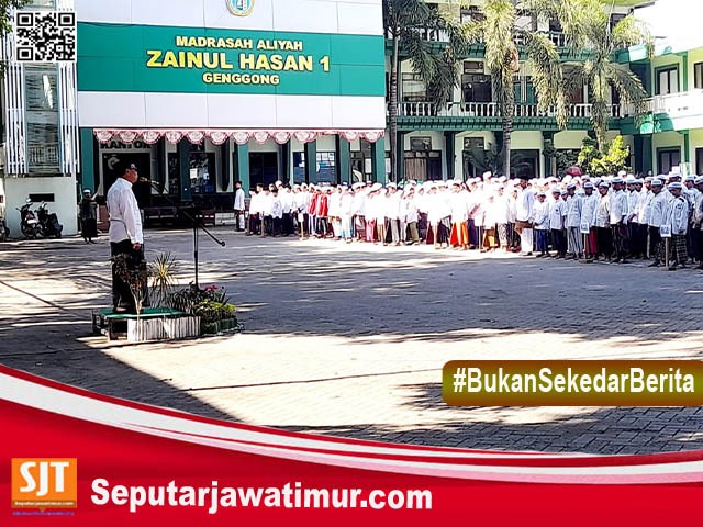 Probolinggo.seputarjawatimur.com Ribuan santri Pondok Pesantren Zainul Hasan Genggong Probolinggo, mengikuti upacara bendera dalam rangka memperingati Hari Santri Nasional (HSN) di halaman sekolah (P5) pada hari Selasa (22 / 10).