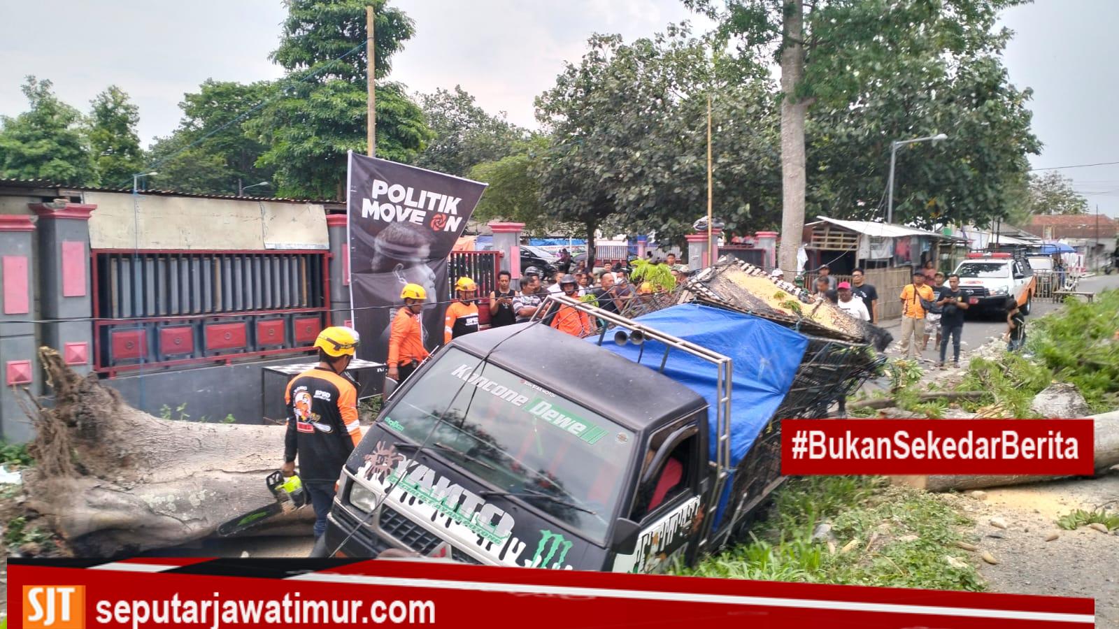 Blitar.seputarjawatimur.com- Sebuah pohon tumbng setelah di sapu angin kencang di Jalan Musi Barat Kota Blitar pada Rabu (3/1) pukul 12.30. Akibatnya , sebuah mobil Pick up yang dikemudakan Eko Prasetyo warga Desa Gogodeso, Kecamatan Kanigoro, Kabupaten Blitar ringsek tertimpa pohon..