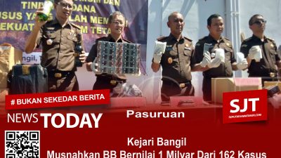 Pasuruan, Seputarjawatimur.com – Kejaksaan Negeri (Kejari) Kabupaten Pasuruan di akhir tahun melakukan memusnahkan barang bukti…