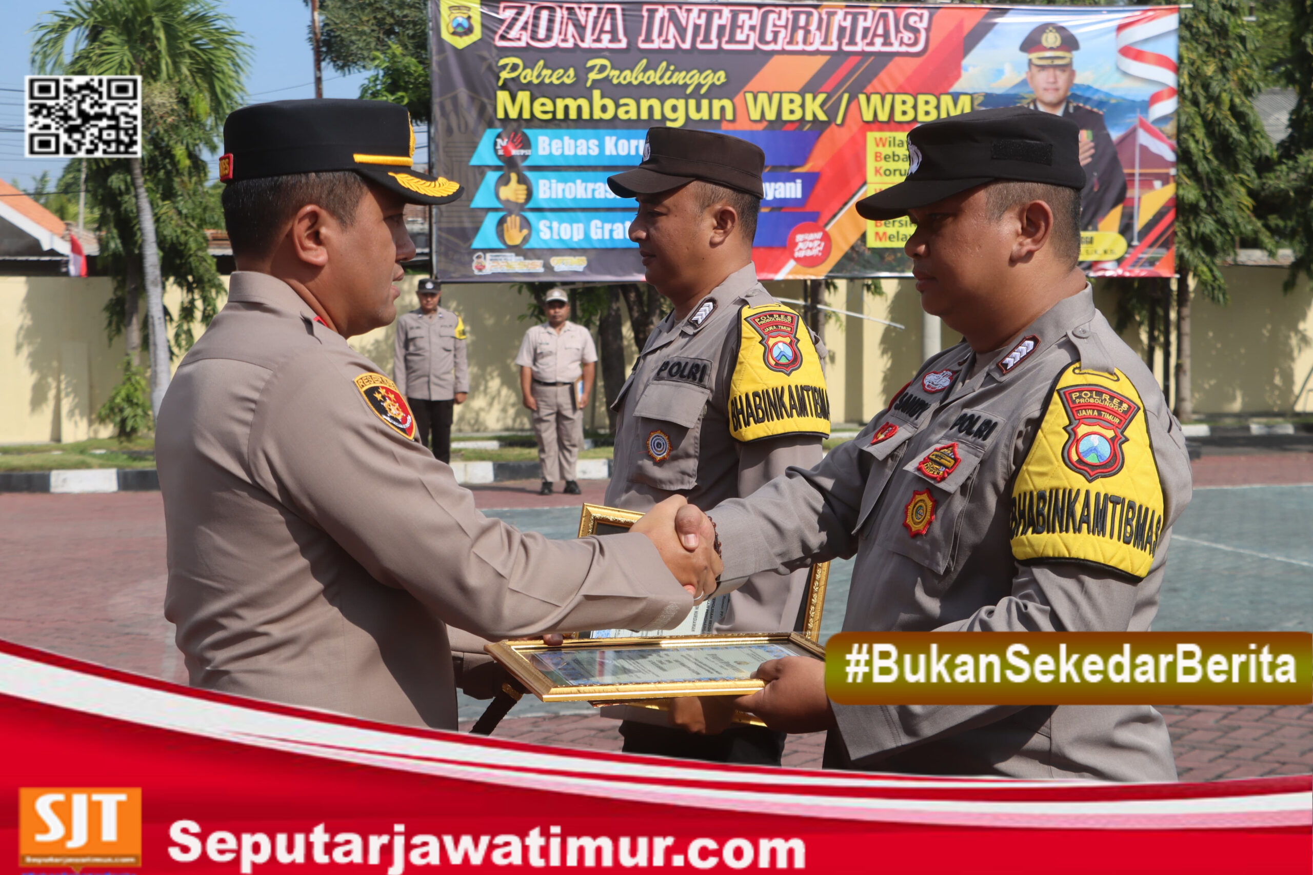 Apel penghargaan ini turut dihadiri Wakapolres Probolinggo, pejabat utama, para kapolsek jajaran, anggota, serta ASN Polres Probolinggo.