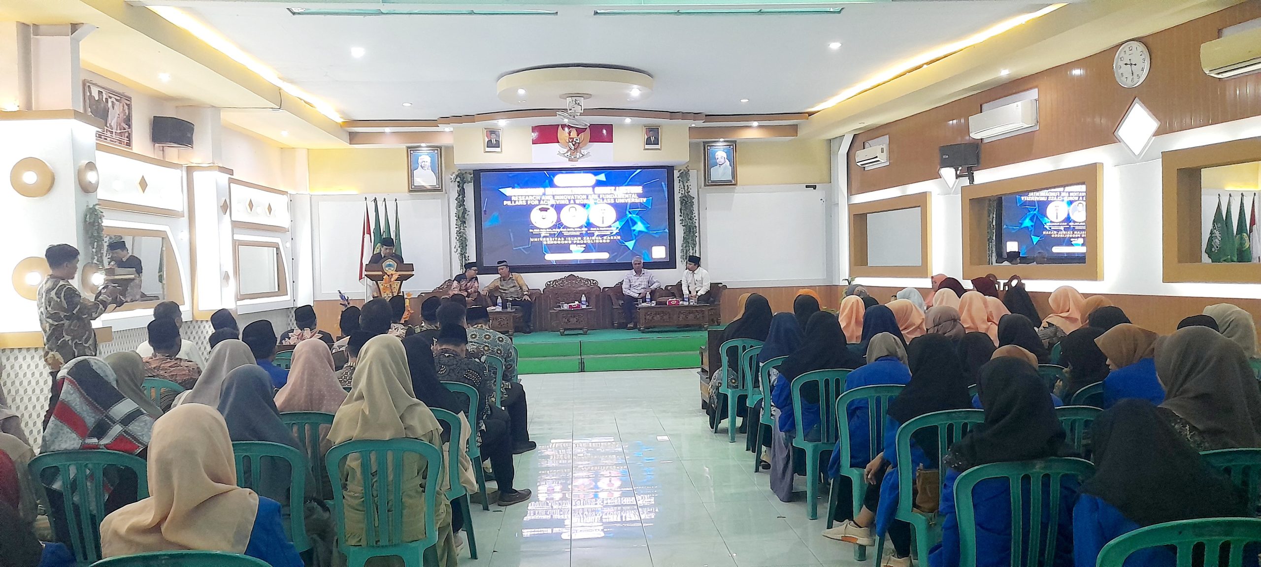 Rektor Universitas Islam Zainul Hasan Genggong, Dr. Abdul Aziz Wahab, dalam sambutannya menyampaikan bahwa inovasi penelitian adalah pilar utama dalam mencapai universitas bertaraf internasional. Tanpa inovasi yang terus-menerus dalam penelitian, sulit bagi institusi pendidikan tinggi untuk bersaing di kancah global dan mencapai standar keunggulan akademik yang diakui secara internasional.